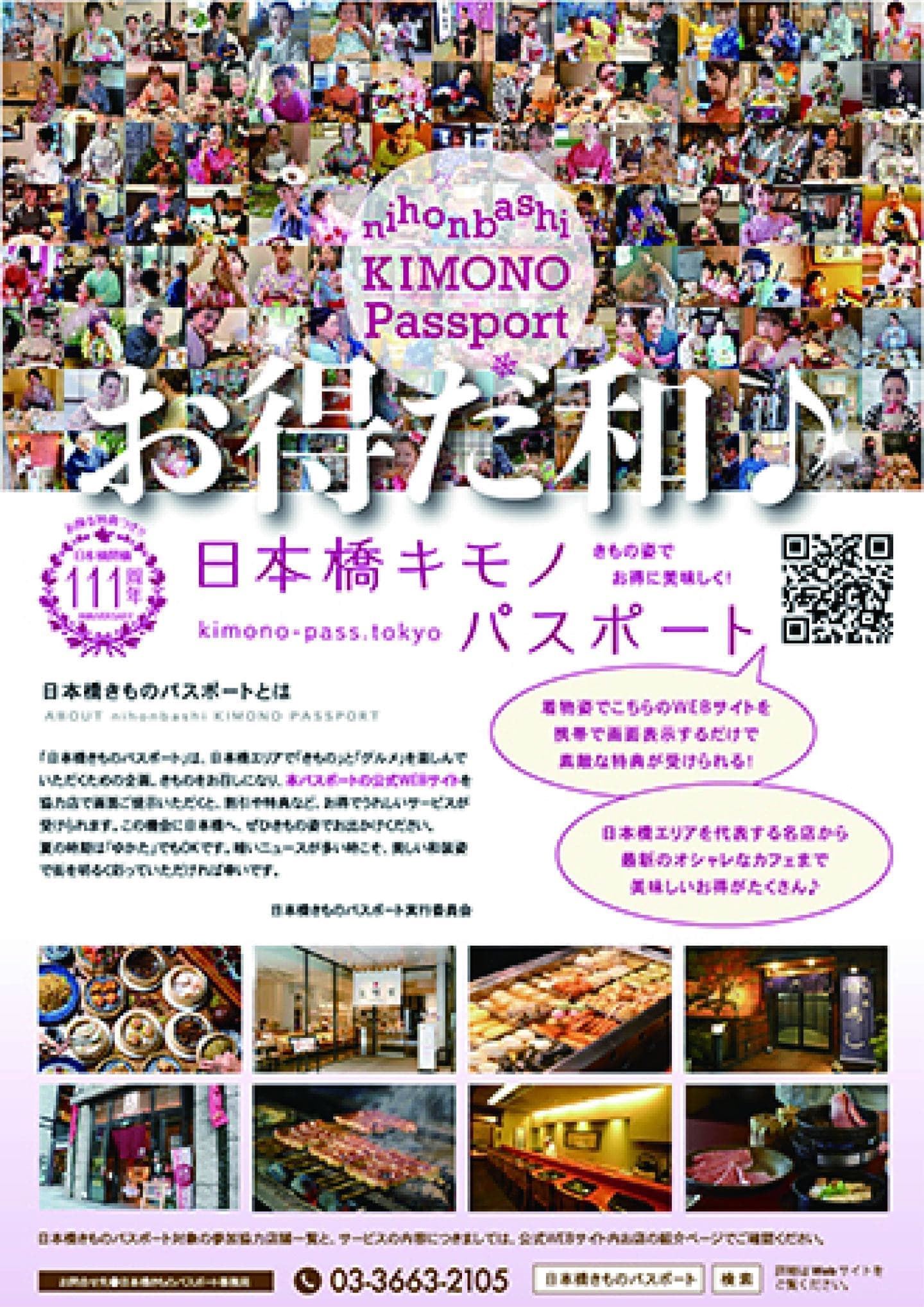「日本橋きものパスポート」は、日本橋エリアで「きもの」と「グルメ」を楽しんで